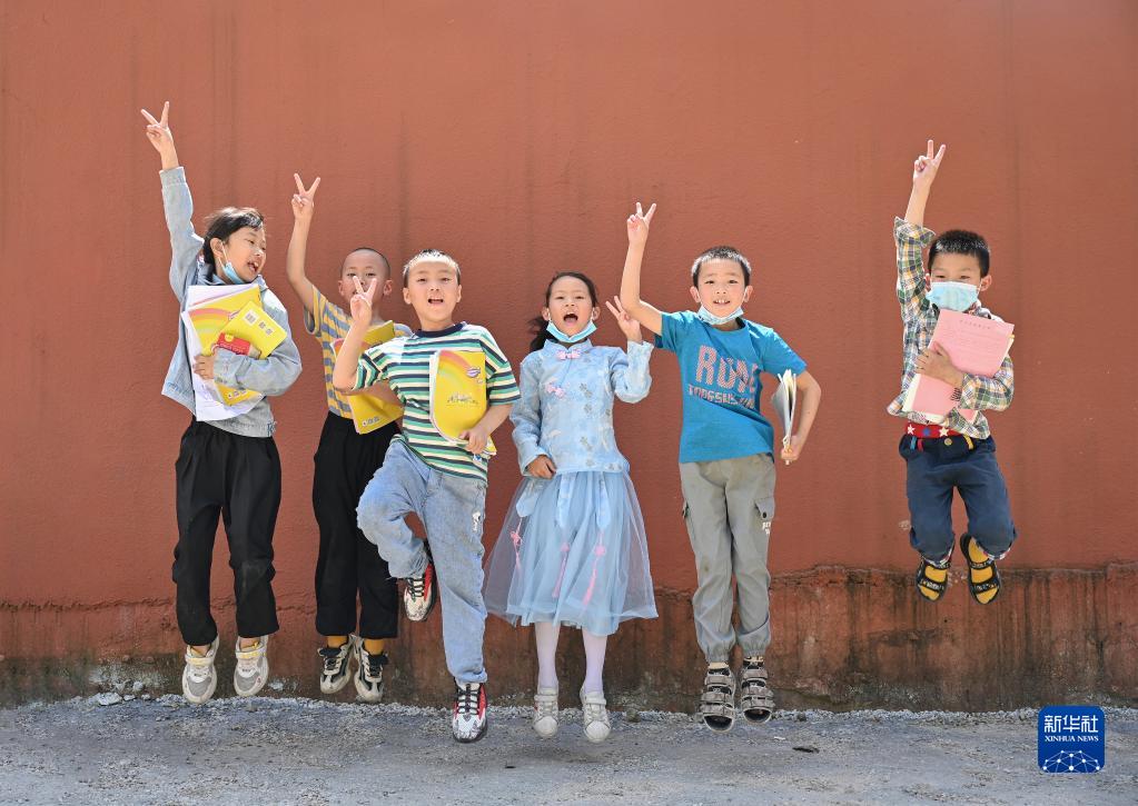 這是2022年6月24日拍攝的下黨村希望學(xué)校的小學(xué)四年級學(xué)生。下黨村希望學(xué)校集合了幼兒園、小學(xué)和初中。