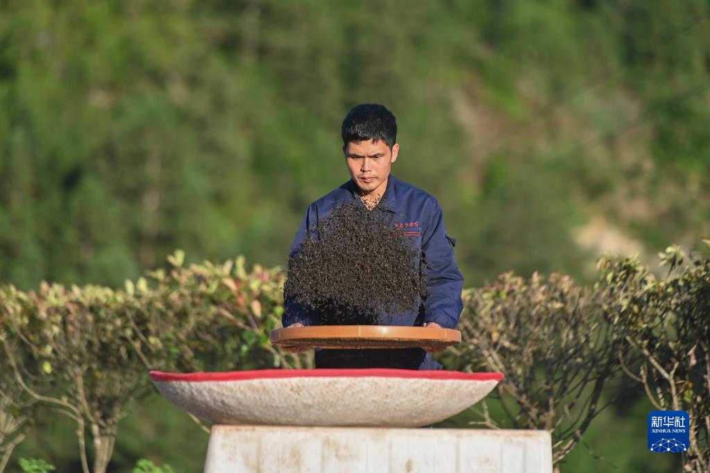 2022年6月23日,村民周建偉在下黨村的茶廠(chǎng)制茶。茶是下黨村的支柱產(chǎn)業(yè)之一,近300戶(hù)村民種植茶葉。