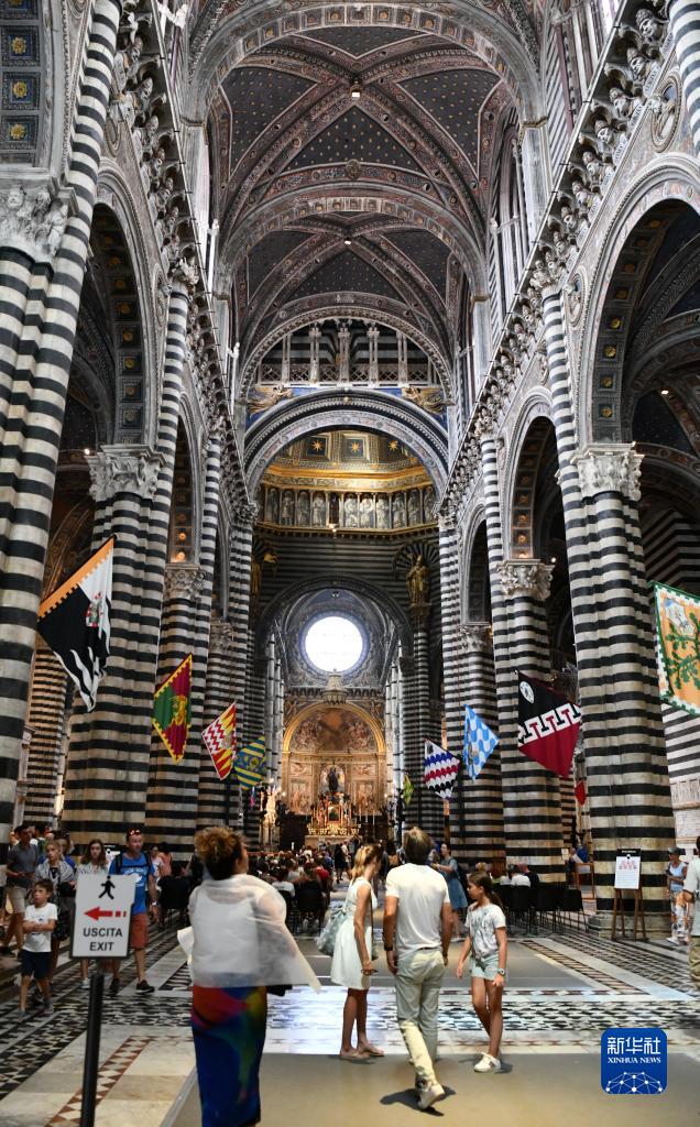 8月15日,游客在意大利錫耶納主教座堂內參觀(guān)。