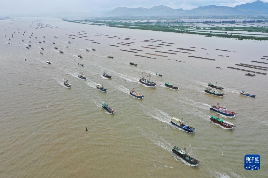 8月16日,漁船駛向大海(無(wú)人機照片)。