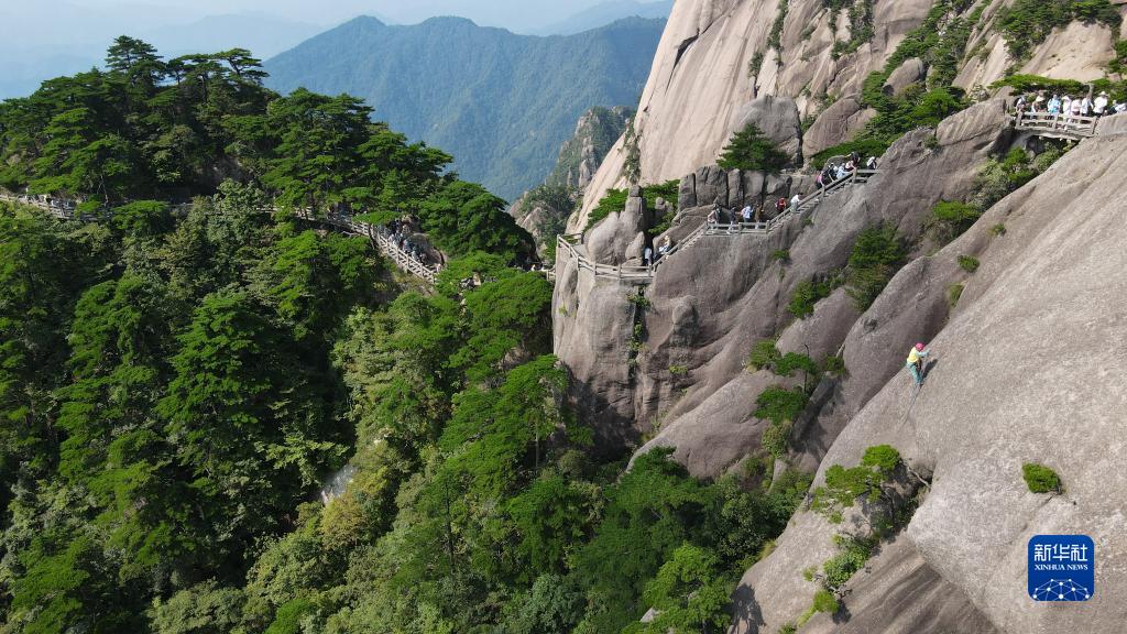 云海、奇石、迎客松……黃山上的這些風(fēng)景令許多游客印象深刻。在游玩時(shí),大家也許還會(huì )遇見(jiàn)這樣一些人:他們或拿著(zhù)設備獨自守護在迎客松旁,或在峭壁上攀爬清理垃圾……他們日復一日地守護著(zhù)美麗的黃山。