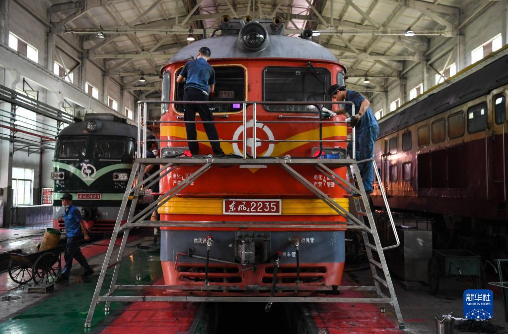 8月16日,廣州機務(wù)段職工在檢修機車(chē)車(chē)頭部件。