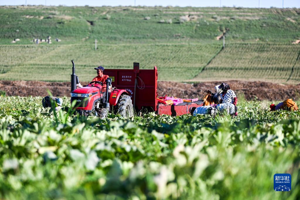 8月15日,種植戶(hù)在田間收獲貝貝南瓜。