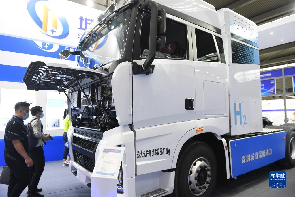 8月16日,觀(guān)眾在第十屆中國電子信息博覽會(huì )上參觀(guān)氫能動(dòng)力重卡。