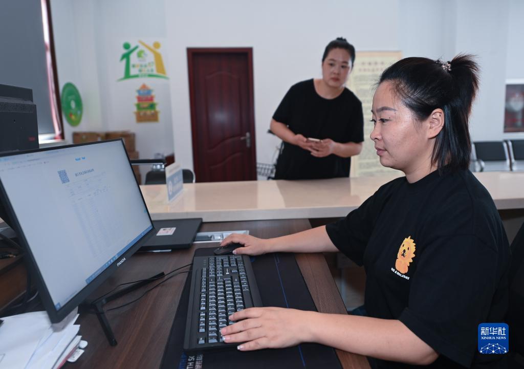 8月17日,在杭州市臨安區玲瓏街道祥里村的便民服務(wù)站,工作人員幫助村民查詢(xún)社保情況?!罢?wù)服務(wù)窗口”已經(jīng)延伸到村里,極大的方便了老百姓。
