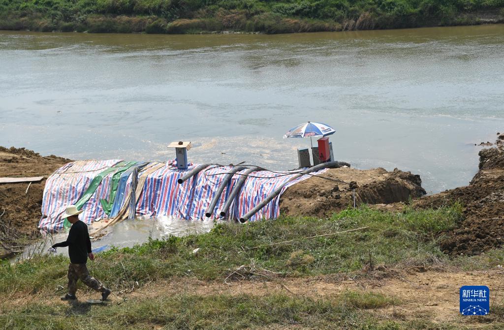 8月17日,在江西省廬山市沙湖山管理處長(cháng)湖管理站,工作人員用水泵將河水抽入水渠灌溉農田。