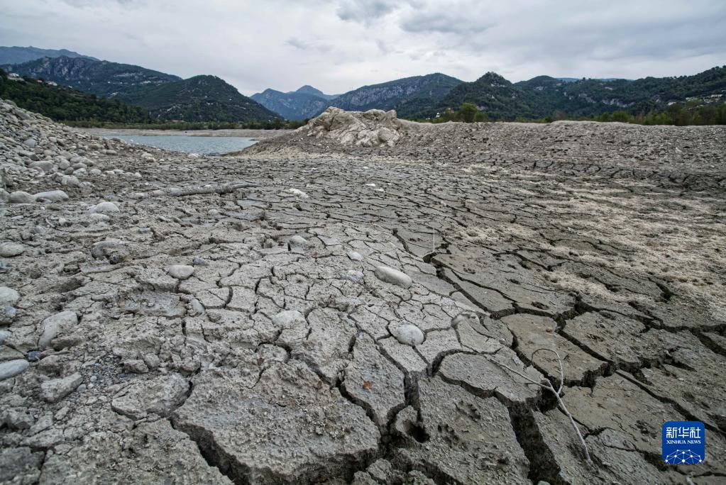 這是8月17日在法國南部城市尼斯附近拍攝的水位下降后的布羅克人工湖。