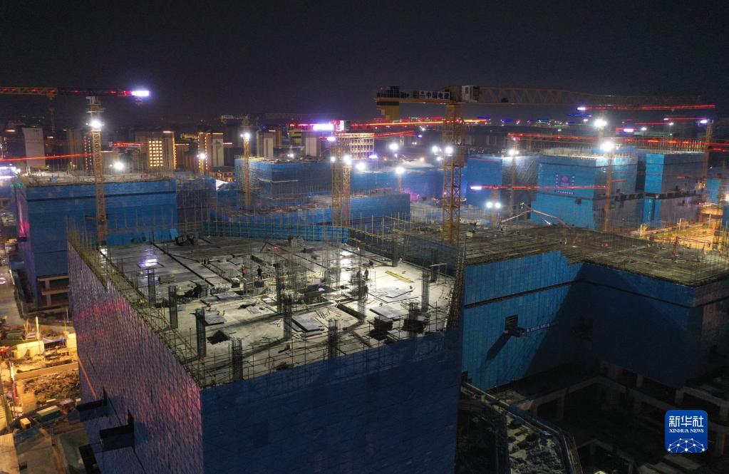 河北雄安新區容東片區雄安·電建智匯城建設項目夜景(8月17日攝,無(wú)人機照片)。