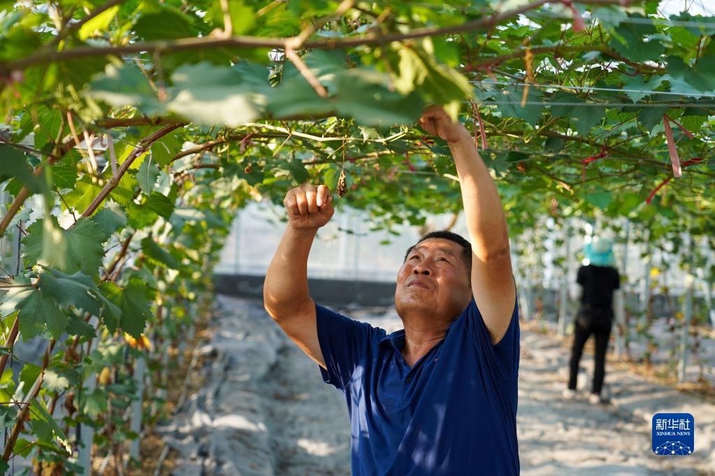 8月17日,園區工人在為葡萄修枝。