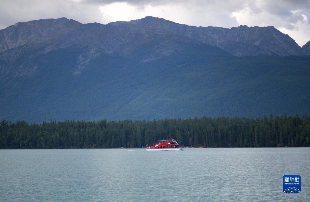 游客正在乘坐游艇在喀納斯湖觀(guān)賞風(fēng)景(8月11日攝)。