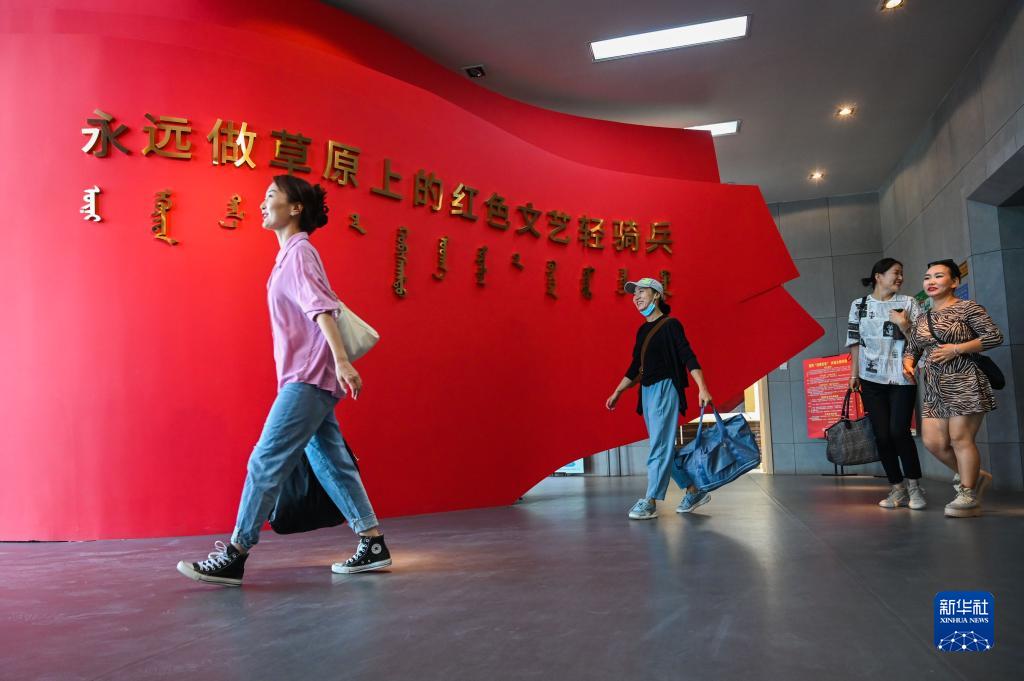 8月17日,蘇尼特右旗烏蘭牧騎隊員們手提行李準備出發(fā)前往牧區。