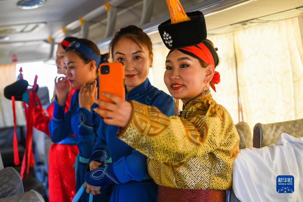 8月17日,在敦達烏蘇嘎查演出點(diǎn),烏蘭牧騎隊員穿戴好演出服裝后合影。