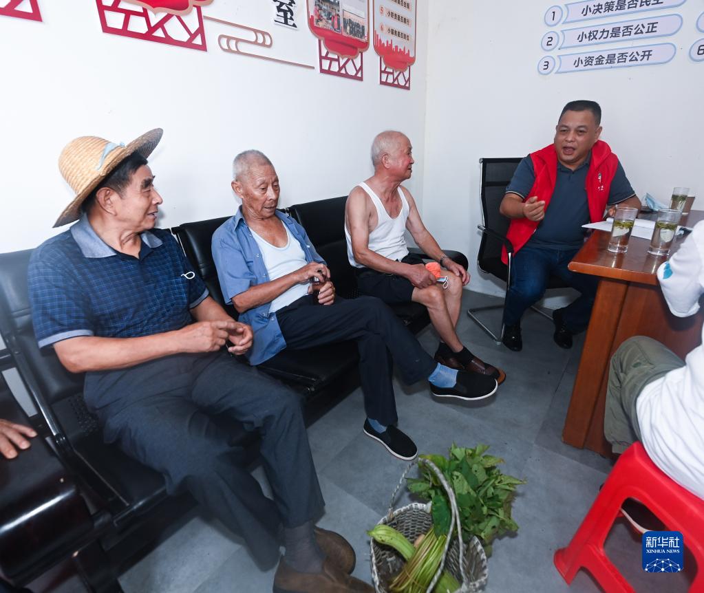 8月18日,在長(cháng)興縣畫(huà)溪街道姚家橋村菜場(chǎng)的“廉心”工作室內,當地村民反映問(wèn)題。