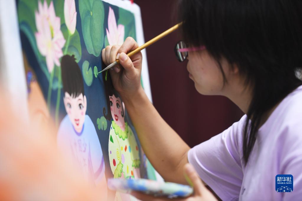 被列入河南省非物質(zhì)文化遺產(chǎn)名錄的舞陽(yáng)農民畫(huà)興起于20世紀50年代,其構圖飽滿(mǎn)、色彩絢麗、造型質(zhì)樸,生動(dòng)記錄了農村社會(huì )發(fā)展變遷,展現了農民對美好生活的向往。如今,在河南省漯河市舞陽(yáng)縣,當地正積極探索農民畫(huà)與研學(xué)體驗、鄉村振興有效結合,促進(jìn)鄉村旅游與文化產(chǎn)業(yè)融合發(fā)展。