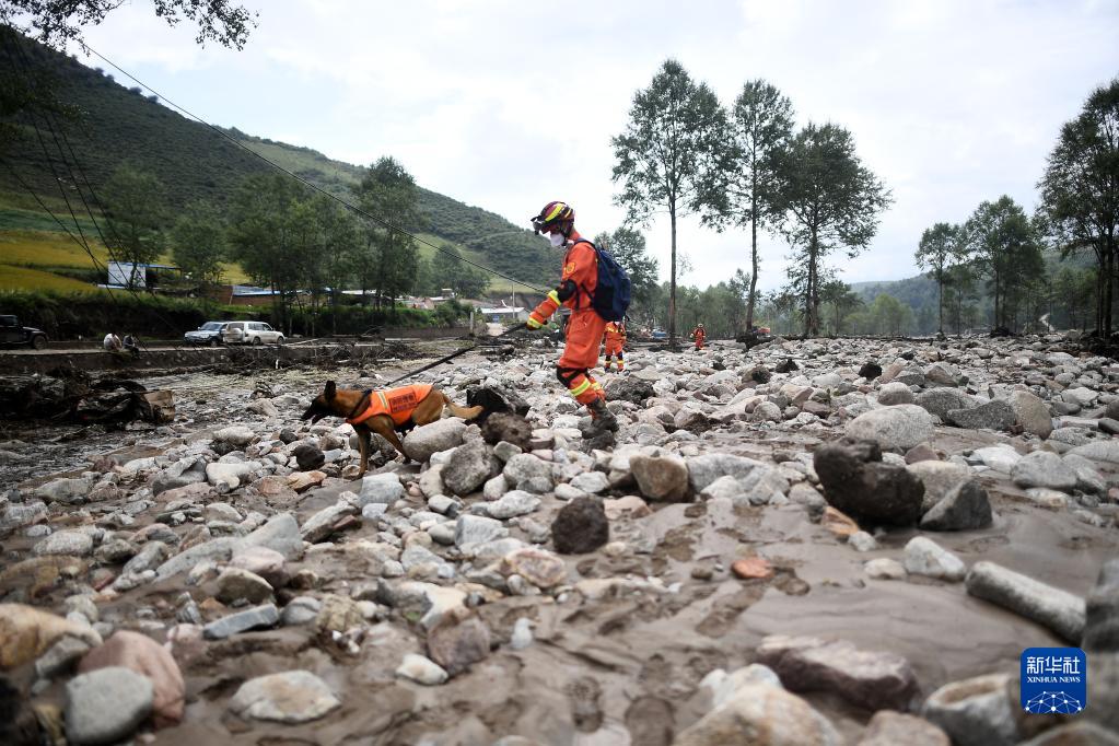 8月18日,消防隊員在青海省西寧市大通回族土族自治縣青山鄉沙岱村開(kāi)展搜救工作。