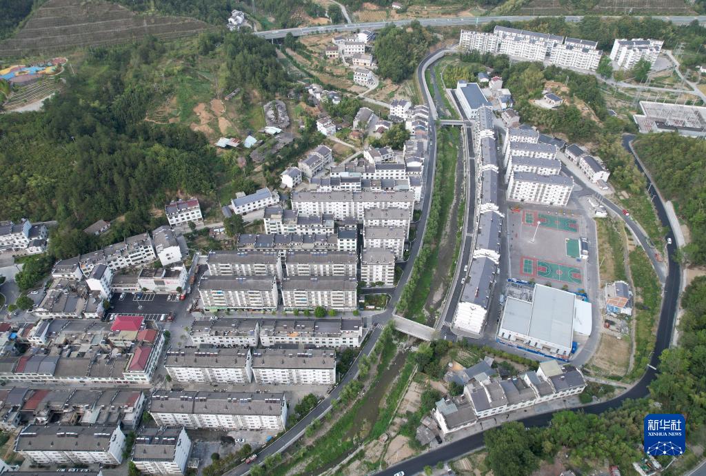 俯瞰老縣鎮錦屏社區(無(wú)人機照片,8月16日攝)。