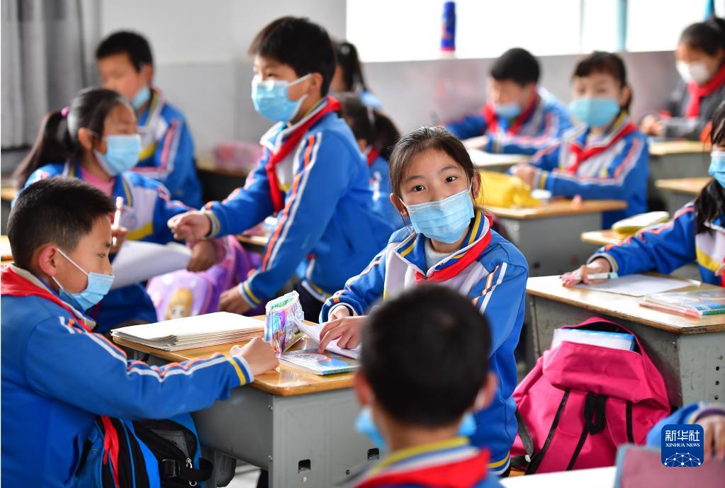 在老縣鎮中心小學(xué)寬敞明亮的教室內,學(xué)生在課間休息(2020年4月22日攝)。