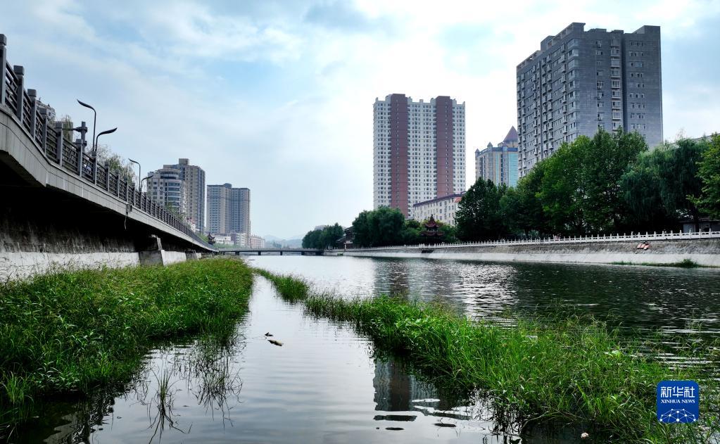 洛南縣的縣河穿城而過(guò),治理后的河道流淌著(zhù)清澈的河水(8月18日攝,無(wú)人機照片)。