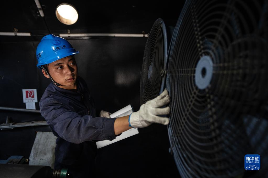 8月18日,三峽姚安發(fā)電場(chǎng)工程人員在風(fēng)力發(fā)電機內進(jìn)行檢修。
