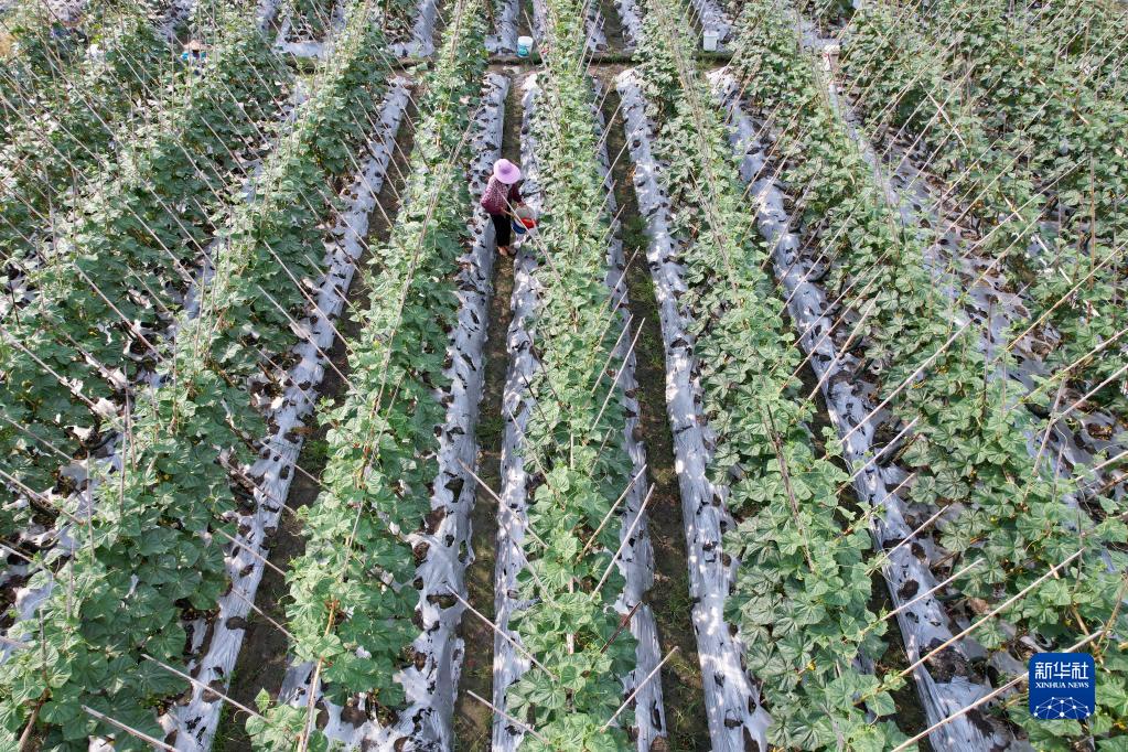 福建省福州市閩侯縣大湖鄉新塘村的菜農在蔬菜種植基地勞作(8月17日攝,無(wú)人機照片)。