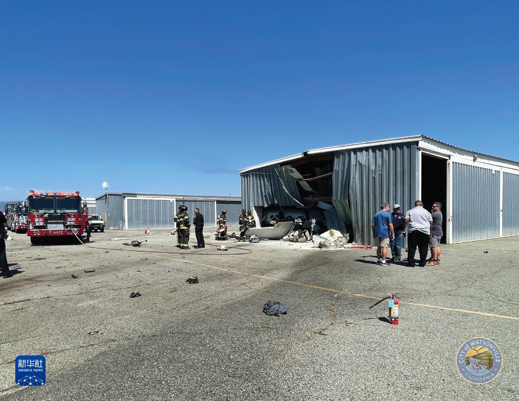 這是8月18日在美國加利福尼亞州沃森維爾市機場(chǎng)拍攝的飛機相撞事故現場(chǎng)。