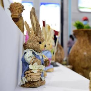 8月19日,與會(huì )者在2022安徽秸稈暨畜禽養殖廢棄物綜合利用產(chǎn)業(yè)博覽會(huì )上觀(guān)看用秸稈制作的工藝品。