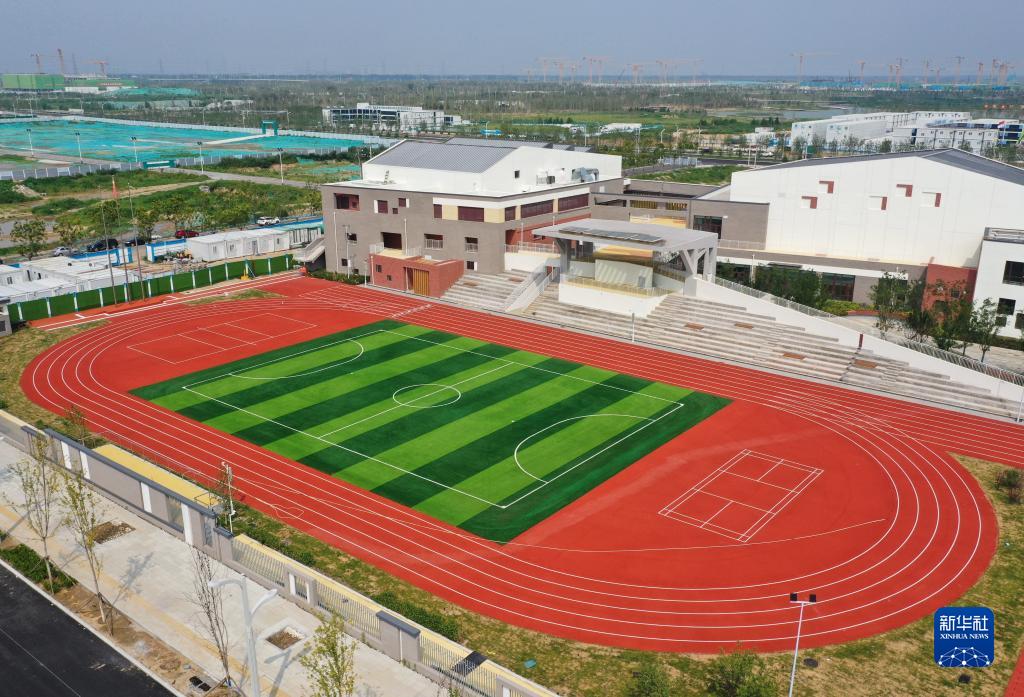 這是史家胡同小學(xué)雄安校區項目操場(chǎng)(8月17日攝,無(wú)人機照片)。
