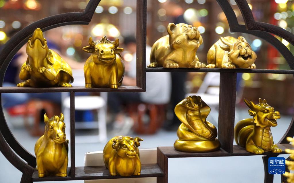 8月19日在第六屆中華老字號(山東)博覽會(huì )山東展區內拍攝的金屬工藝品。