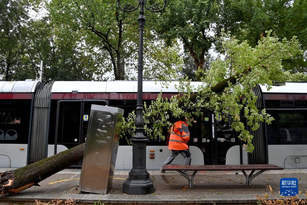 這是8月18日在意大利托斯卡納大區首府佛羅倫薩拍攝的被刮倒的樹(shù)木。