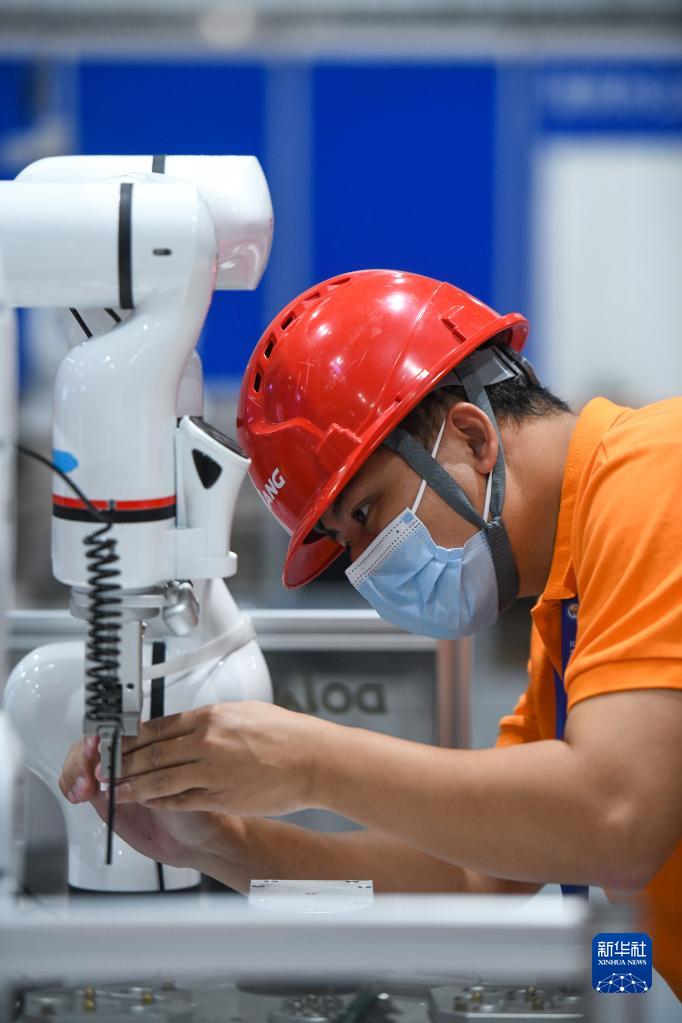 8月19日,選手在工業(yè)機器人技術(shù)應用項目比賽中操作。
