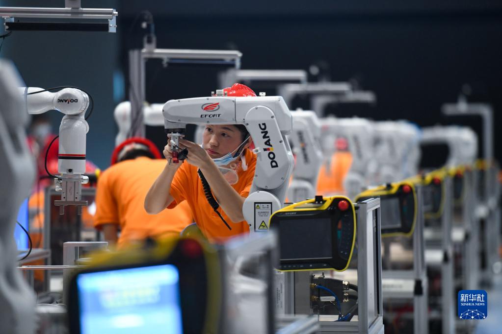 8月19日,選手在工業(yè)機器人技術(shù)應用項目比賽中操作。