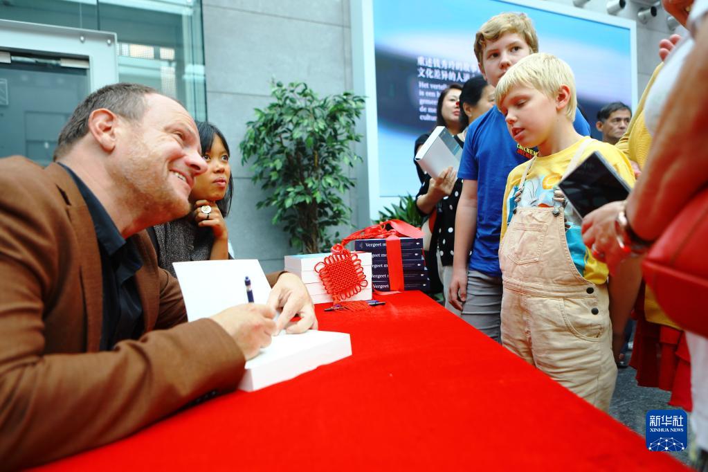 8月17日,在比利時(shí)布魯塞爾中國文化中心,出版社代表以及譯者在《忘記我》荷蘭語(yǔ)版新書(shū)發(fā)布儀式上簽名贈書(shū)。