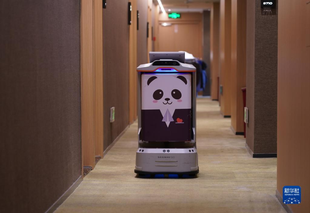 該酒店的服務(wù)機器人為入住客人提供外賣(mài)、客耗品的無(wú)接觸配送服務(wù)。不僅節省人力,也提升了酒店的服務(wù)品質(zhì)。