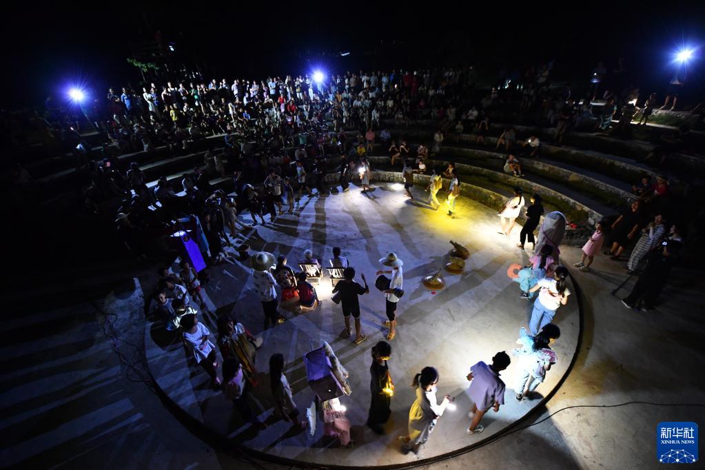 8月20日,孩子們在大元社露天劇場(chǎng)演出戲劇。