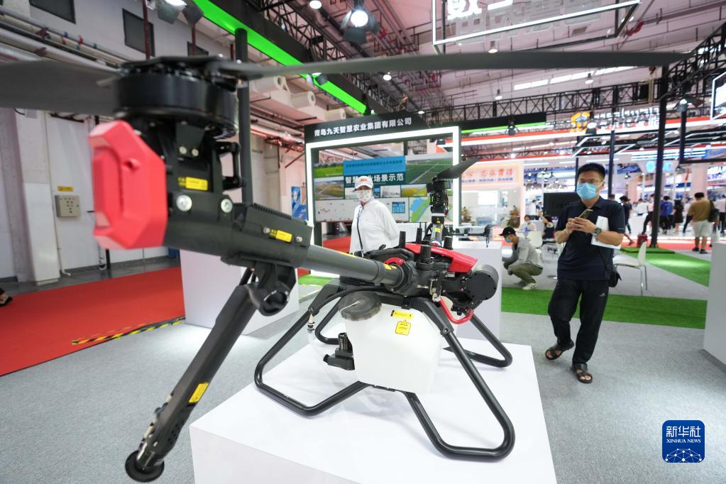 這是在2022世界機器人博覽會(huì )“機器人+農業(yè)”區域展示的一款農業(yè)無(wú)人機(8月19日攝)。