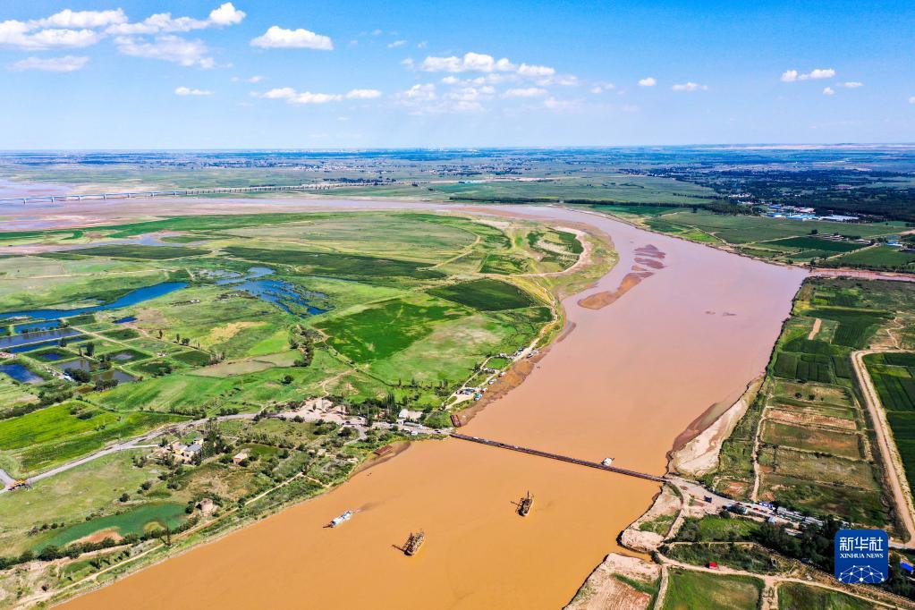8月15日在內蒙古鄂爾多斯市達拉特旗拍攝的黃河景觀(guān)(無(wú)人機照片)。