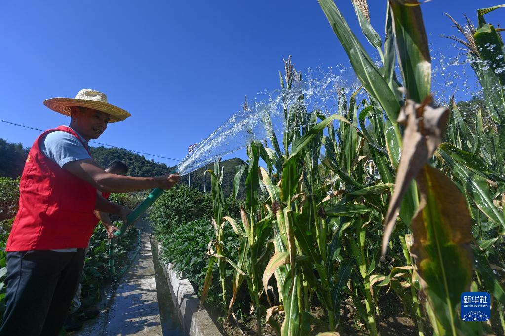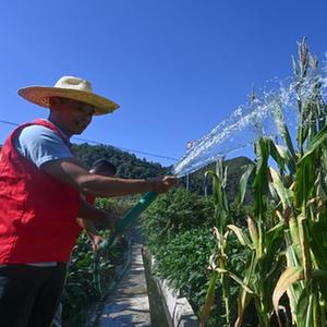 8月22日,在浙江省淳安縣屏門(mén)鄉將坑村,黨員志愿者在澆灌玉米地。