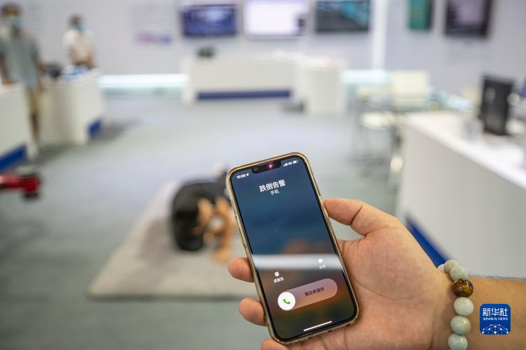 8月22日,在2022智博會(huì )專(zhuān)精特新展廳,工作人員在演示大健康安全守護系統的應用場(chǎng)景。