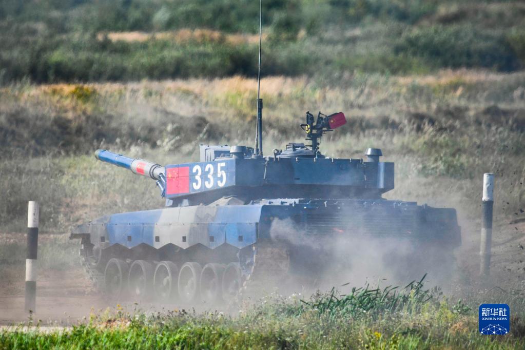 8月21日,在俄羅斯莫斯科州阿拉比諾靶場(chǎng),中國參賽隊96B坦克在比賽中。