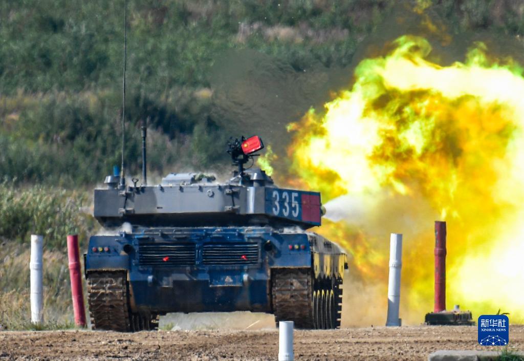 8月21日,在俄羅斯莫斯科州阿拉比諾靶場(chǎng),中國參賽隊96B坦克在比賽中。