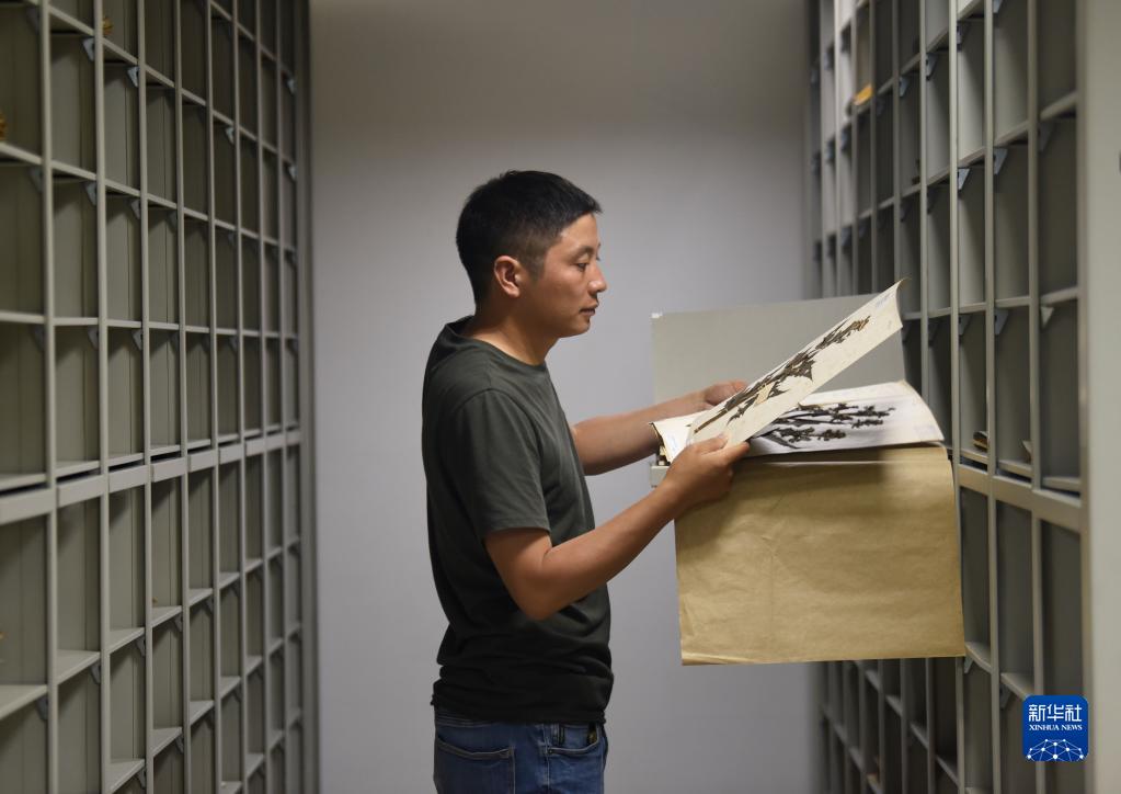 胡君在中科院成都生物研究所標本館內查閱標本(8月17日攝)。新華社記者 劉坤 攝
