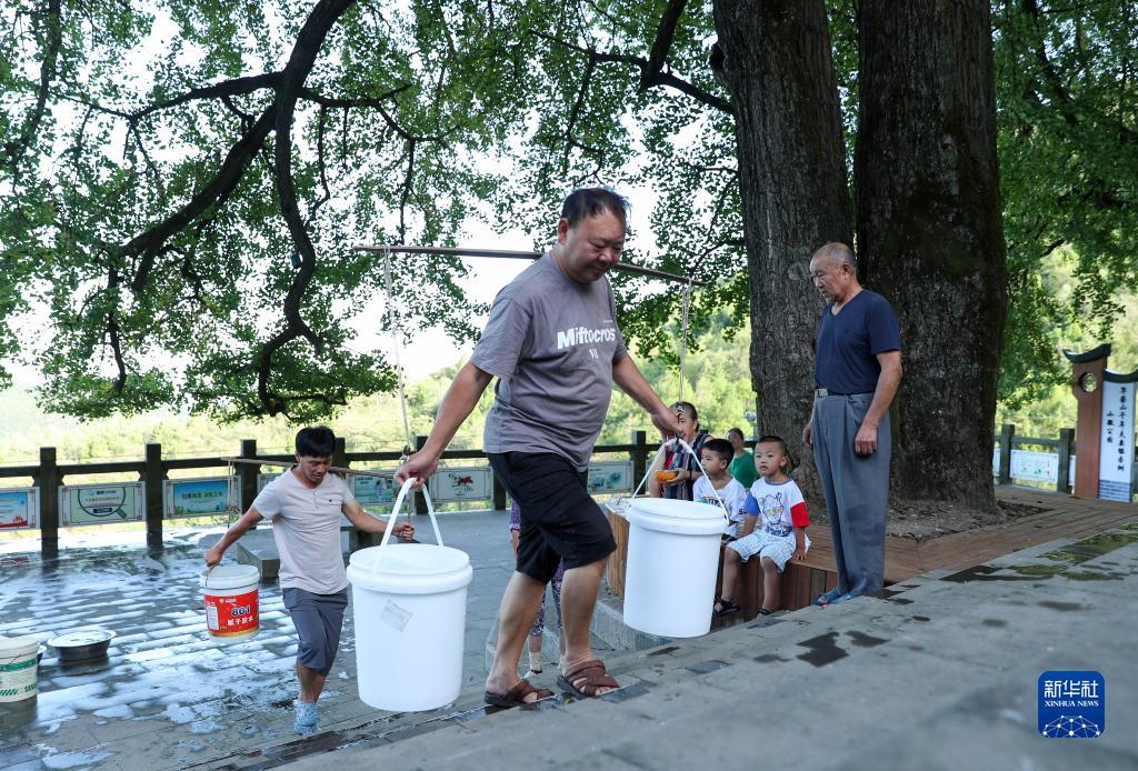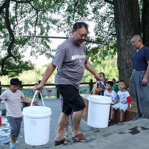 8月22日,四川省華鎣市紅巖鄉的黨員干部為茶園村王家院子的群眾挑送生活用水。