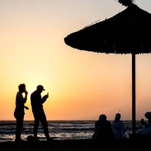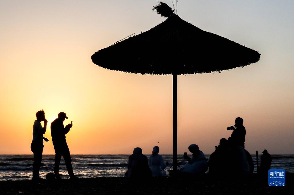 8月21日,人們在俄羅斯達吉斯坦共和國馬哈奇卡拉市的海濱休閑。新華社/塔斯社