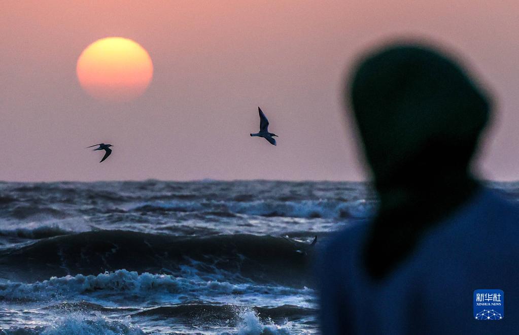 8月21日,海鳥(niǎo)在俄羅斯達吉斯坦共和國馬哈奇卡拉市的海濱飛翔。新華社/塔斯社