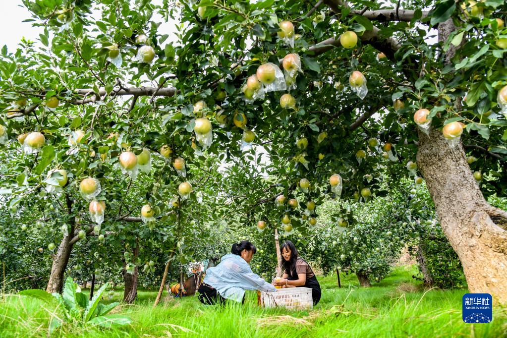 8月23日,河南省濟源市邵原鎮史家腰村農民在采摘富硒蘋(píng)果。