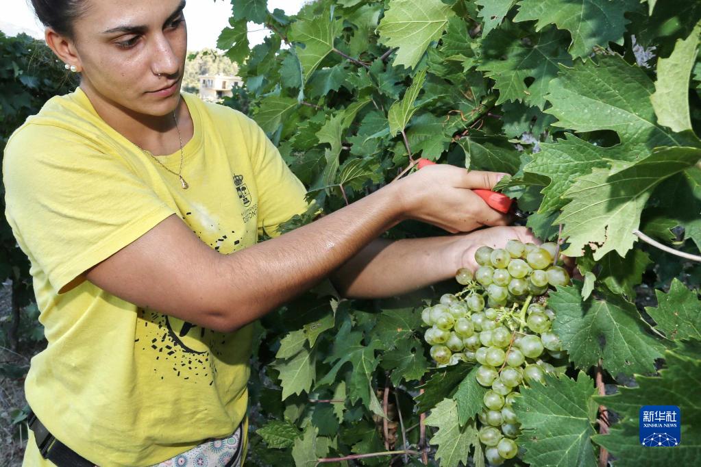8月23日,工作人員在法國尼斯一家酒莊的葡萄園收割葡萄。
