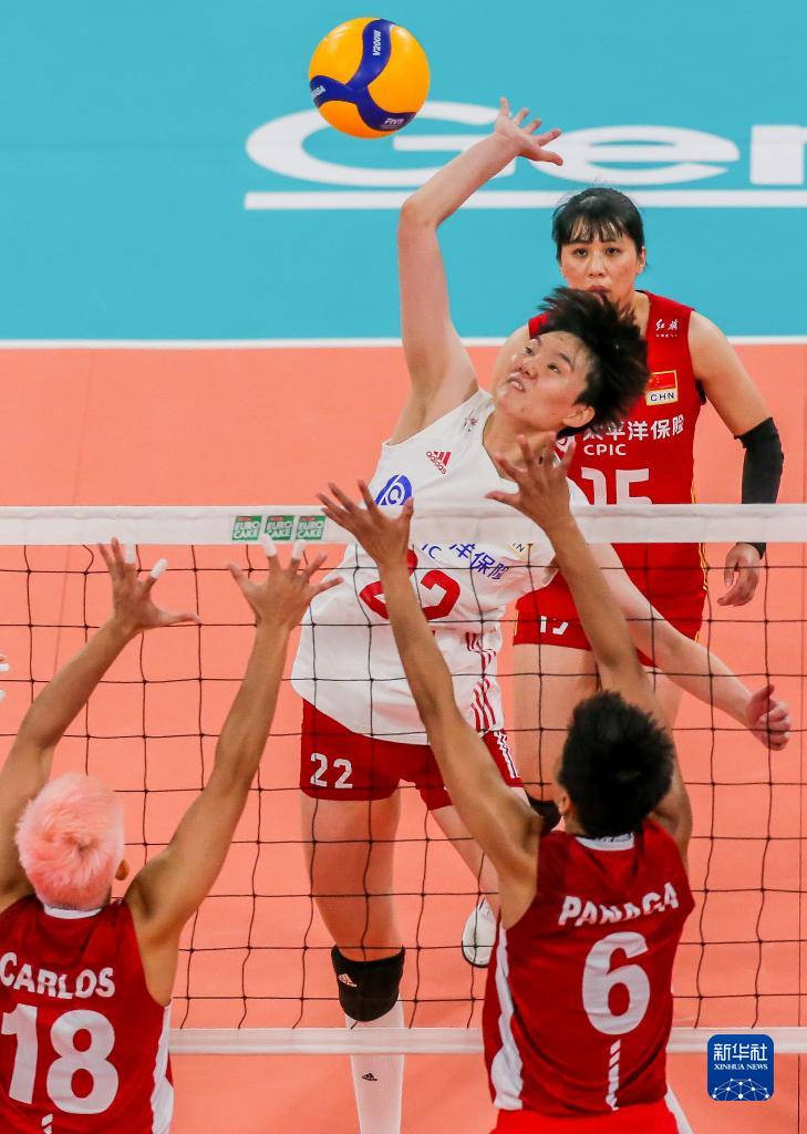 當日,在菲律賓帕西格市舉行的2022年女排亞洲杯小組賽中,中國隊以3比0戰勝菲律賓隊,取得三連勝。