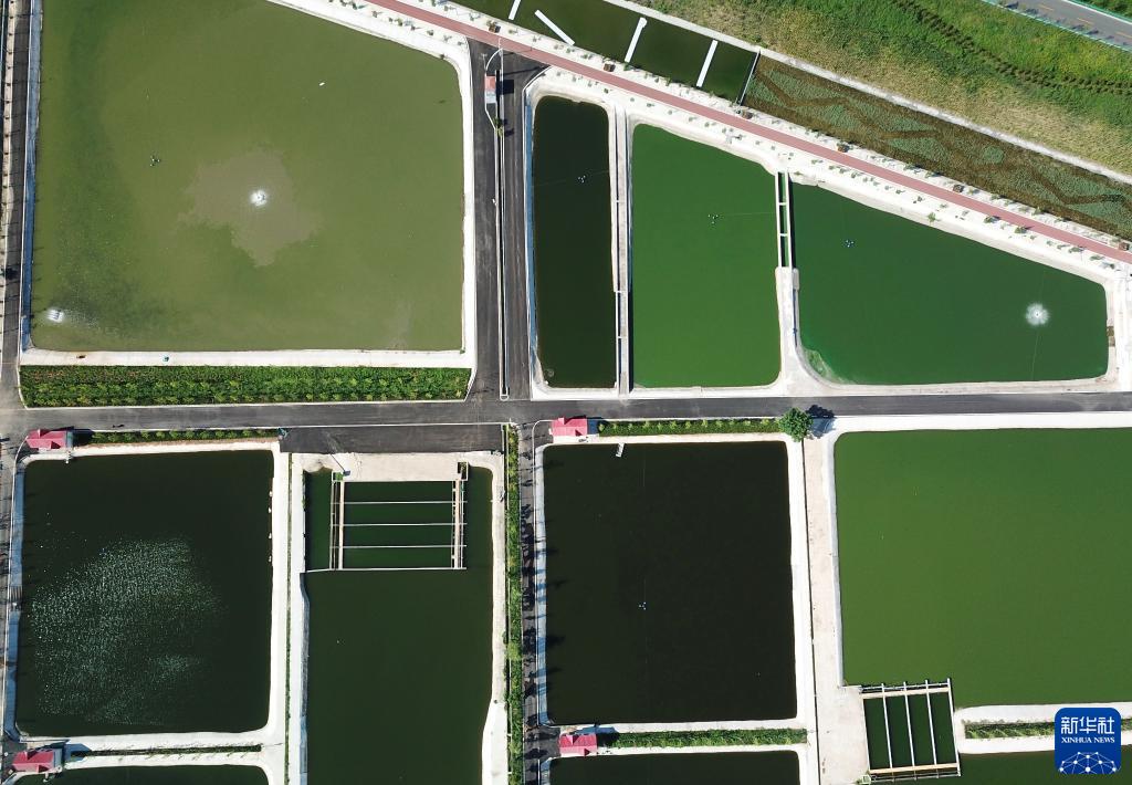 8月23日,山東省微山縣微山湖現代漁業(yè)產(chǎn)業(yè)園的生態(tài)魚(yú)塘(無(wú)人機照片)。