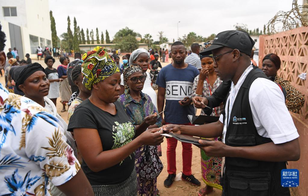 8月24日,工作人員在安哥拉羅安達省的一處投票站外核對選民的個(gè)人信息。