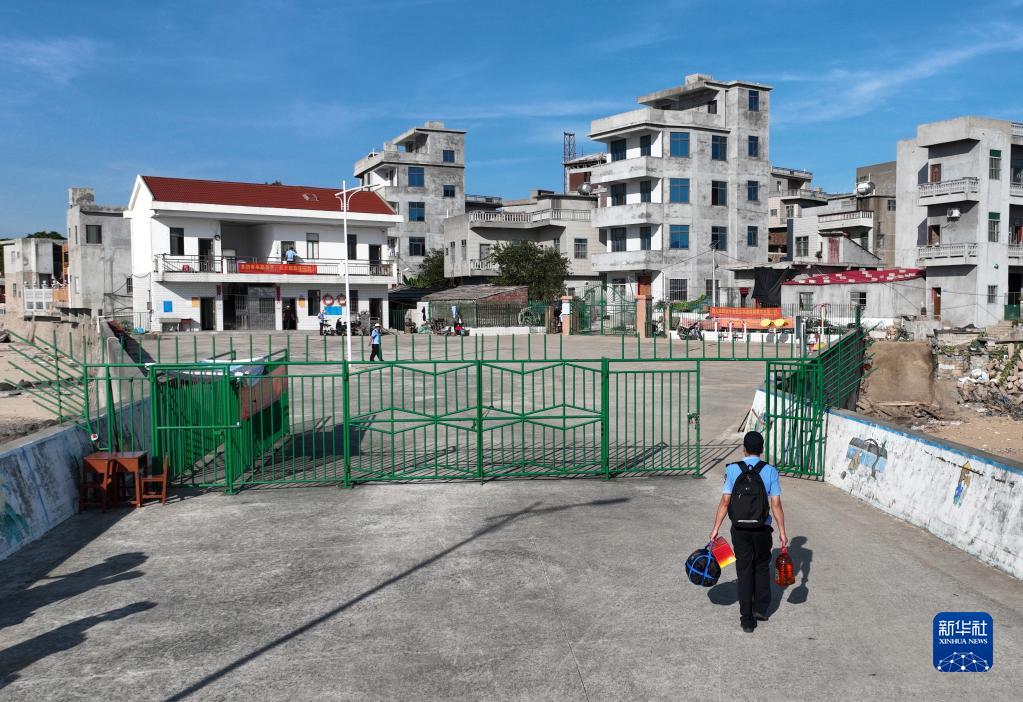 8月23日,在莆田市秀嶼區埭頭鎮黃瓜村,許偉偉從碼頭進(jìn)村(無(wú)人機照片)。